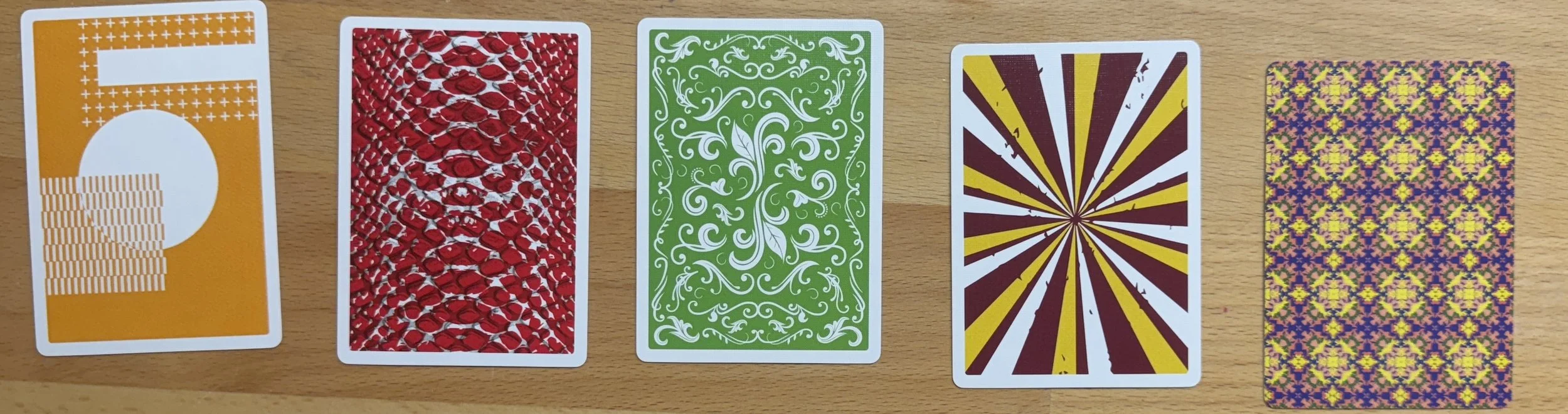 Also, these might be the ugliest card backs ever committed to cardstock. I’m hoping they were designed by AI or something, because if a human actually designed these, their graphic-design teacher deserves a quiet beating with a bag of oranges.
