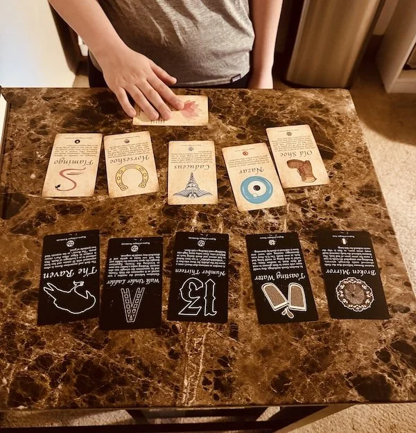 Old Ritual: “In old fortune-telling lore, there’s a card known as the Death Card. Most people think it’s the Ace of Spades, but traditionally it’s the Four of Clubs. There’s a ritual where you shuffle, then deal through the deck—and wherever the Death Card appears tells how close death is to you. If you turn it over early on, danger’s near; late in the deck and you’ve got plenty of time left. I’ll walk you through the process and we’ll see what fate says tonight.”