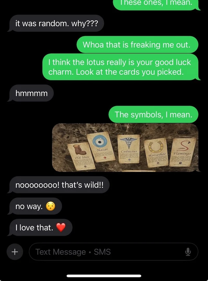 Old Ritual: “There’s an old gypsy ritual where you pick a playing card as your ‘Happiness’ card and train yourself to tune into it. Supposedly, when you can find it in a shuffled deck, it opens your ability to find happiness in real life. I’ll show you how it’s done.
