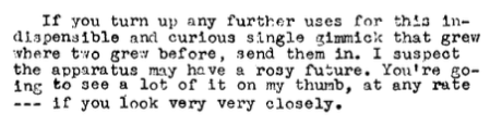 Many years after I first performed this effect I read an idea in the Jinx, called the Invisible Pull, where Annemann combined a pull with a thumbtip. Alas, you can't really use it to vanish the thumbtip itself, as in the effect above, but it still seemed like a very versatile idea to me for other effects. I never really got accustomed to the handling for it, and I'm guessing not many other people did either, as it seems to not have caught on. But in experimenting with it I came up with a whole new set-up that I think a lot of you will find interesting. It's not just a pull or thumbtip. It's kind of an invisible close-up magic multi-tool. In fact, that's what I'll call it, The Invisible Close-Up Magic Multi-Tool (ICUMMT).
