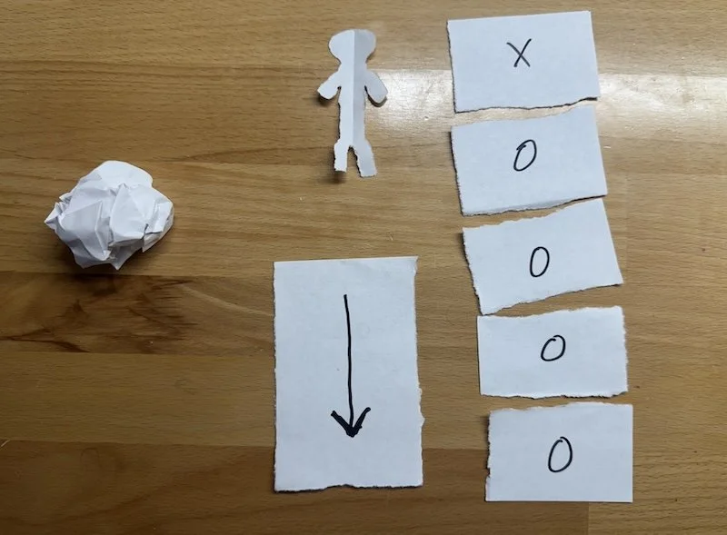 When they’re done, give them piece A and tell them to crumple it into a ball.