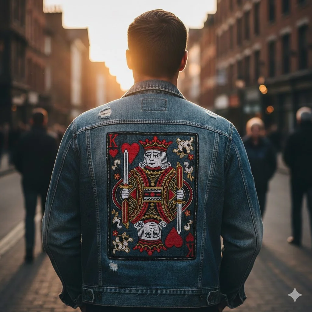 • Add trickery to the reveal itself. If I can show you the back of my jacket at the start of the trick and there's nothing on it, then you can't just brush off the whole thing as a simple force. Now we're approaching an actual strong trick (if still a kind of stupid one).