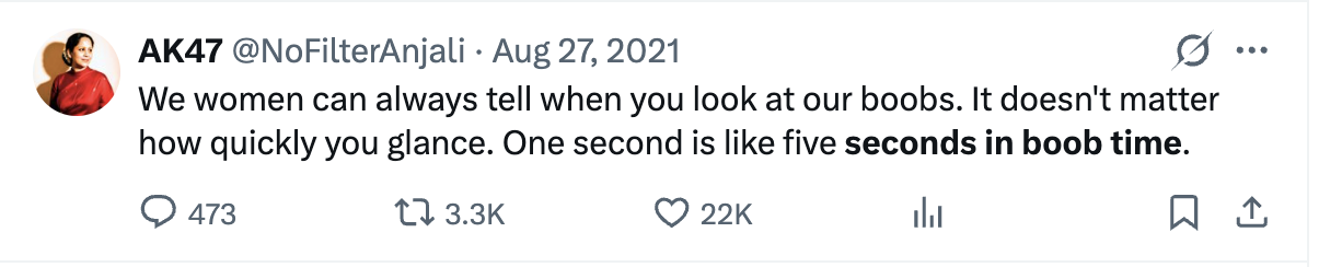 Next time you're crafting a peek, think of every woman rolling their eyes when you “quickly” glance at their cleavage and remember this post.